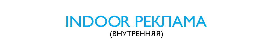 Что такое indoor реклама? Термин индор реклама понятен из самого названия - это внутренняя реклама. То есть это рекламные носители, которые находятся внутри различных помещений с большой проходимостью или большим скоплением людей. К ним относятся: торгово-развлекательные центры, супермаркеты, бизнес центры, рестораны, кафе, заведения быстрого питания, жилые дома, ВУЗы, кинотеатры, фитнес-центры, отделения Укрпочты, медицинские центры, больницы, поликлиники.